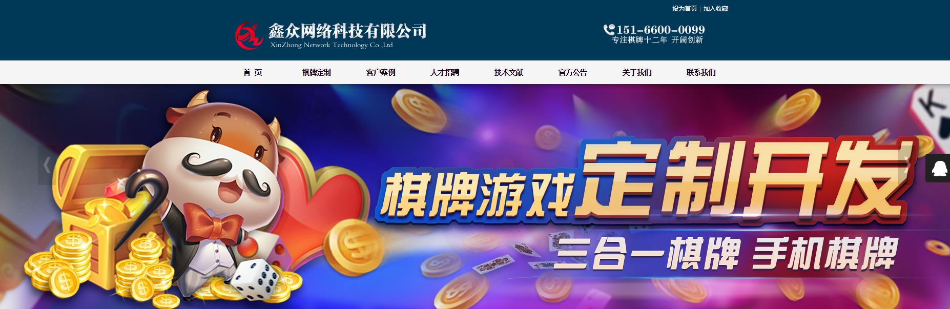 青島鑫眾網(wǎng)絡科技有限公司成立于2006年3月,是一家專業(yè)從事網(wǎng)絡棋牌游戲軟件定制、開發(fā)、銷售及技術(shù)支持的高科技軟件技術(shù)公司。核心技術(shù)人員具有五年以上專業(yè)棋牌開發(fā)經(jīng)驗,開發(fā)速度在國內(nèi)一流,可根據(jù)客戶需求定制游戲產(chǎn)品和服務。自成立以來,我們一直以追求一流的技術(shù)和服務為目標,并始終處于高速、穩(wěn)定的發(fā)展狀態(tài)。在銷售方面,技術(shù)人員具有成功開發(fā)國內(nèi)知名棋牌游戲站點的經(jīng)驗,對于整個棋牌游戲市場有著深刻的認識,并有著強大的市場資源。公司產(chǎn)品的銷售量遙遙領(lǐng)先,包括臺灣、香港、澳門等地區(qū)。同時我們的產(chǎn)品也遠銷國外日本、韓國、美國、法國、新加坡、烏克蘭、德國等多個國家。